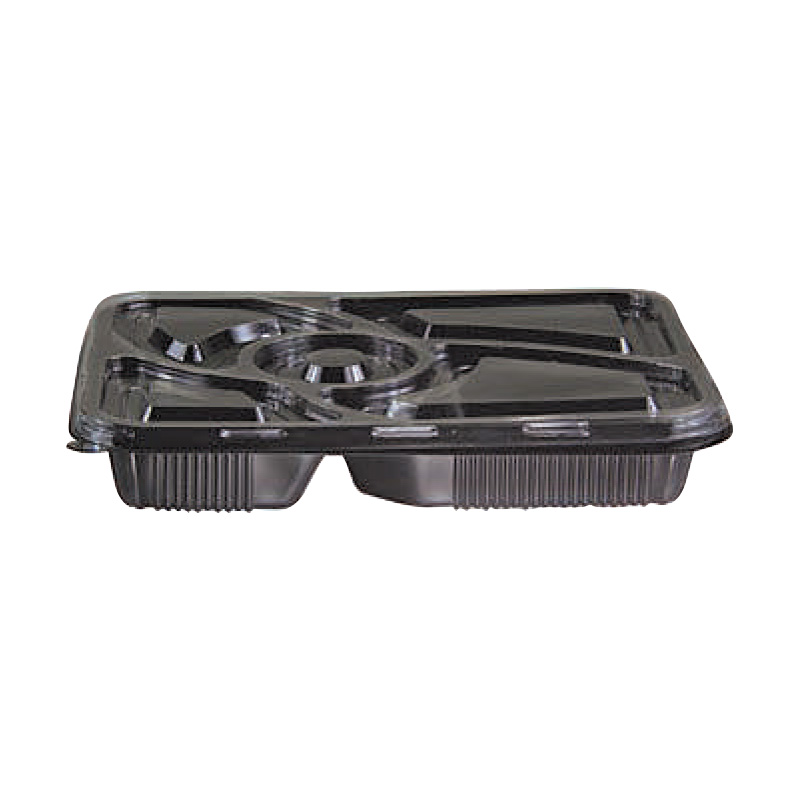 Black Microwavable Rect. Cont. 5 Comp + Clear Lid